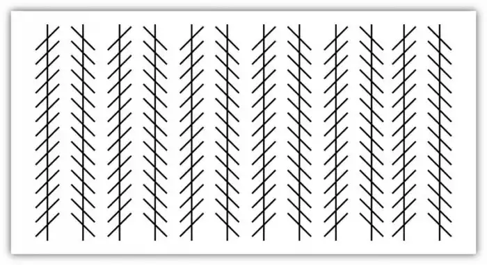 Зато ему удалось легко распознать все иллюзии. Например, классическая иллюзия Цёлльнера. Человеку с нормальным зрением кажется, что прямые здесь находятся под наклоном друг к другу. И только логикой удается понять, что они параллельны.