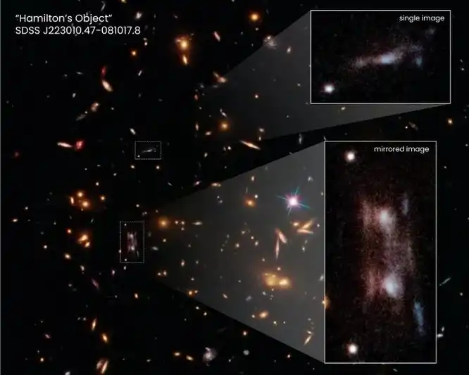 В 2013 году астроном Тимоти Гамильтон из Университета в Портсмуте, штат Огайо изучил данные космического телескопа Хаббла и обнаружил странную картину. Три совершенно идентичных галактики, которые находятся в далеком уголке видимой части Вселенной - в 11 млрд световых лет от Земли. Загадочную "тройняшку" назвали в честь ее первооткрывателя - объектом Гамильтона.
