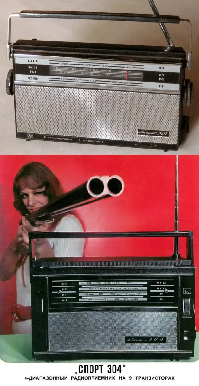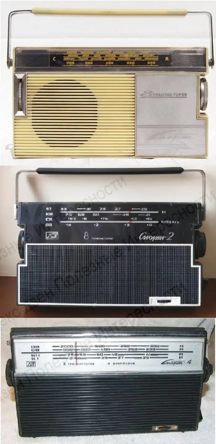 С 1965 года завод осваивает уже радиоприемники с КВ диапазоном "СПОРТ" (ДВ, СВ, КВ1, КВ2). За время выпуска эта марка перетерпела аж семь модификаций (СПОРТ, СПОРТ-2, СПОРТ-3, СПОРТ-4, СПОРТ-301, СПОРТ-304, СПОРТ-305). Лично мне гораздо больше нравится дизайна первых двух модификаций.