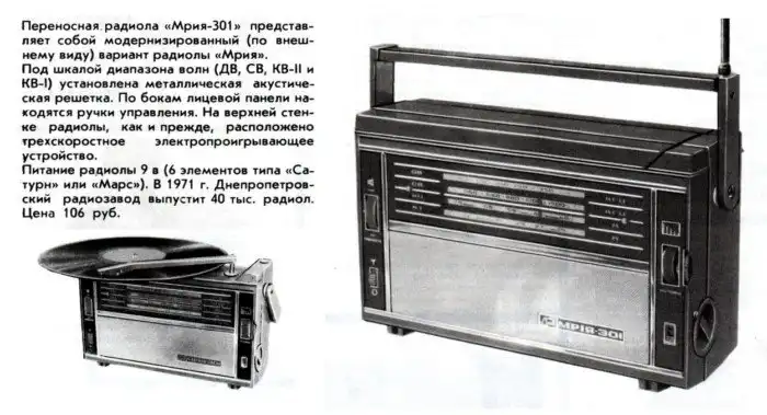 Учитывая, что начало 70х это эпоха царствования виниловых дисков, переносная компактная радиола действительно "МРIЯ" (МЕЧТА).
