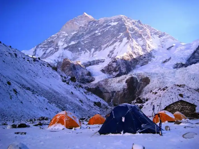 Третий по высоте горный массив, состоящий из 5 вершин. Расположен в Гималаях, на границе Непала с Индией.