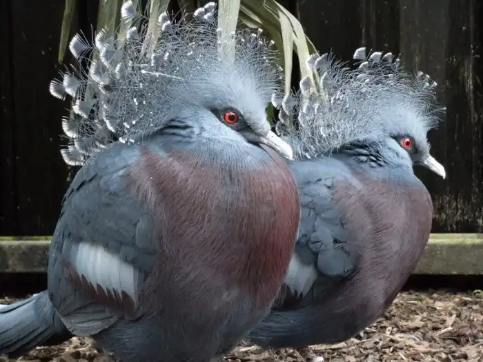 Венценосный голубь из Новой Гвинеи. Весит 2,5 кг - почти в 10 (!) раз больше обычного голубя. Зачем ему "венчик" - ученые так и не установили. Скорее всего раньше он им помогал в половом отборе, а теперь просто остался, как рудимент