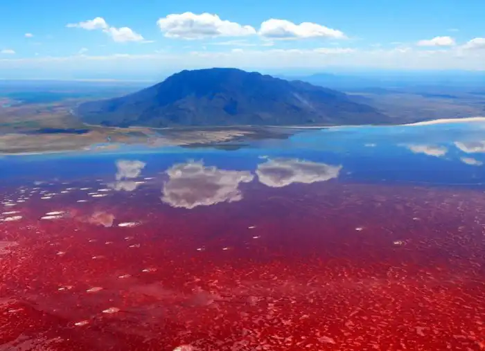Вода из озера Натрон в Танзании буквально разъедает кожу, как только вы к ней прикоснетесь. Если хоть немного искупнуться здесь - то кожа покроется волдырями и ожогами.