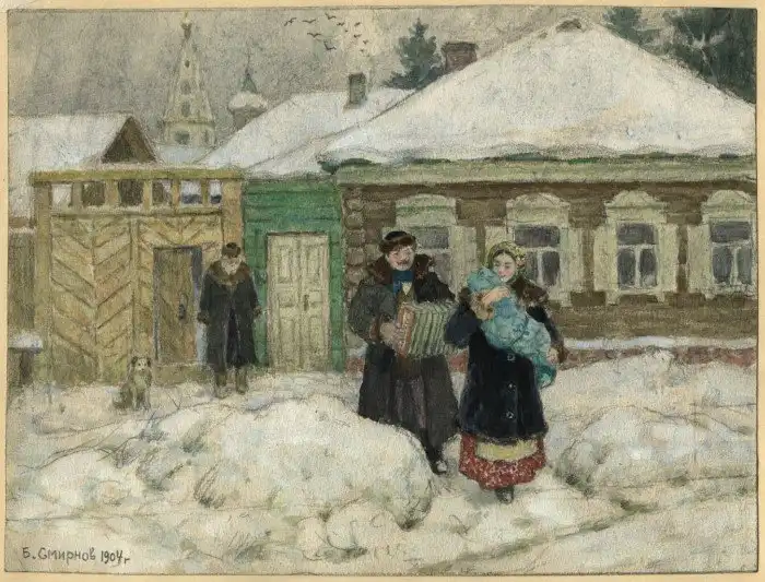 О том, что на рисунке именно 1904 год, говорит и факт биографии художника: именно в 1904 году он предпринял путешествие по Сибири. Например, вот ещё рисунок из этой серии: