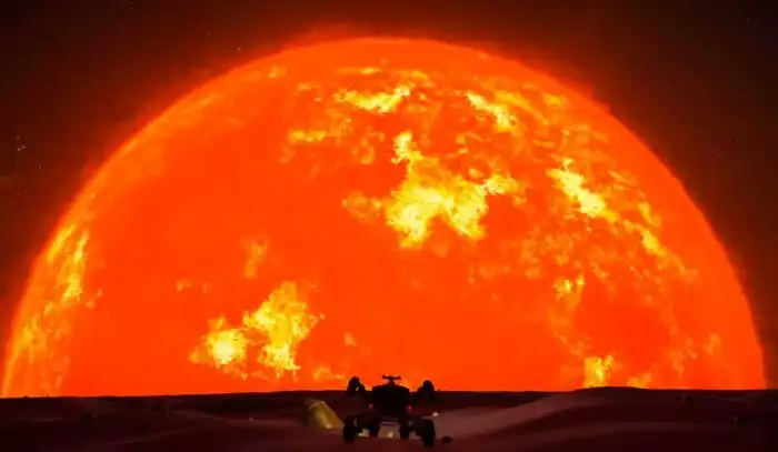 Вид с Земли на Солнце, которое стало растущим красным гигантом