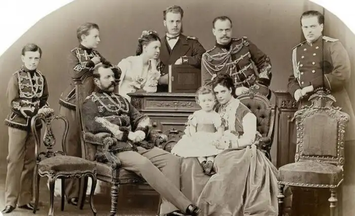 Александр II с семьёй. Второй справа в верхнем ряду – будущий Александр III