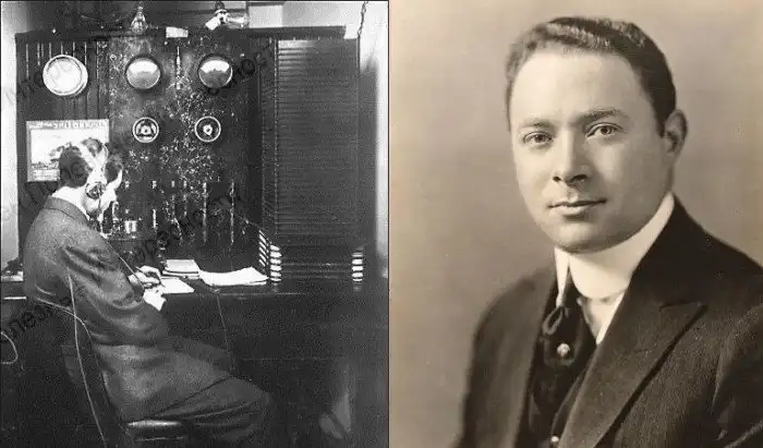 Семья эмигрировала в США, где 11 летний Давид начал работать продавцом газет. В 15 лет он выучил азбуку Морзе и был принят на работу в телеграфную компанию. Известность свалилась на юношу в 21 год: он одним из первых принял сигналы SOS с тонущего "Титаника" и трое суток поддерживал связь со спасателями, получая свежие новости. Карьера бедного еврейского юноши резко пошла вверх и вскоре он дорос до коммерческого директора телеграфной компании.