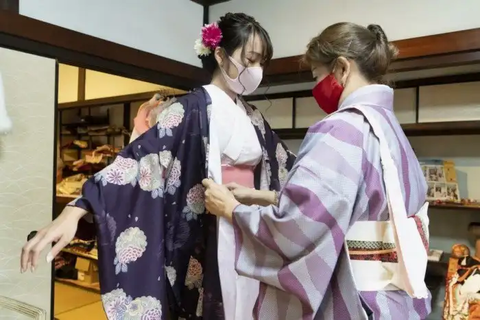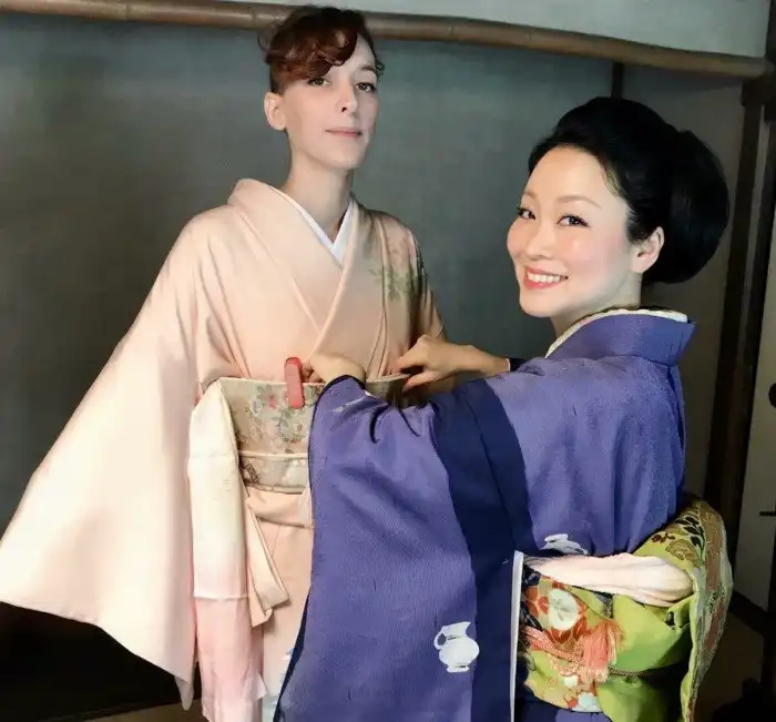 Знаю, что в салонах красоты иногда помогают нарядиться в кимоно для какого-либо случая, соблюдая все тонкости.