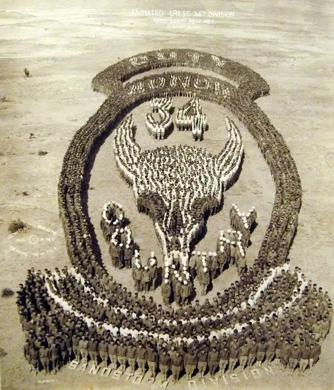 Солдаты 34-й пехотной дивизии образуют эмблему своей дивизии