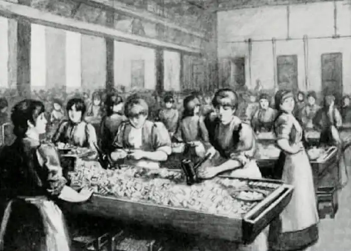 Детишки этих мест начинали работать уже с семи лет. Они или собирали конский навоз на улицах, или были трубочистами. Девочек нанимали на работу "почище" - на спичечную фабрику, где они каждый день имели дело с токсичным белым фосфором.