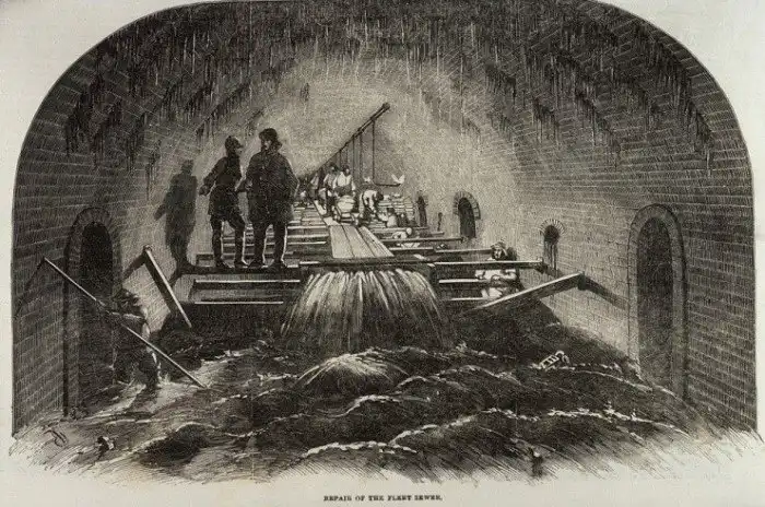 В 1858 году случился "Великий смрад". Стояло крайне жаркое лето, Темза обмелела, а ведь именно в нее сливались все промышленные отходы и нечистоты. Река стала гнилостным болотом. Жители города были всерьез напуганы, ведь от "миазмов" (что в те времена все еще считалось основной причиной инфекций) в спокойном и благополучном районе не спастись. Власти города решились выделить денег на строительство канализации.