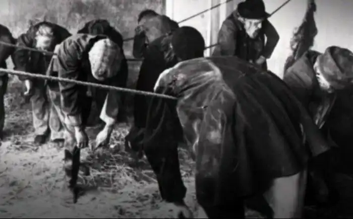 А за два пенса можно было поспать на очень странном приспособлении - "веревочной кровати" или "подвесе".