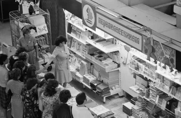 Отдел канцелярских товаров для школьников в "Доме ленинградской торговли", 1984