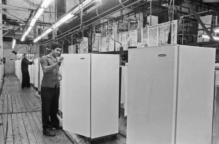 В сборочном цехе домашних холодильников "ЗИЛ", выпускаемых на заводе имени Лихачева