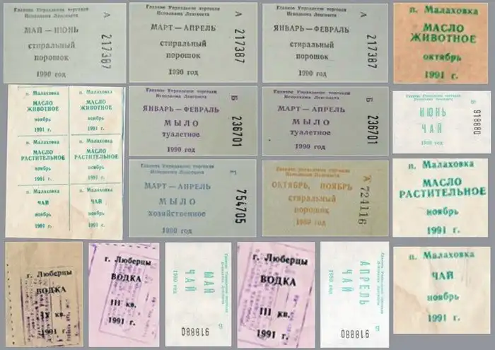 С талонами на бензин или машинное масло все обстояло неоднозначно: автомобили были у единиц, и талоны выдавали единицам, они могли различаться по количеству литров.