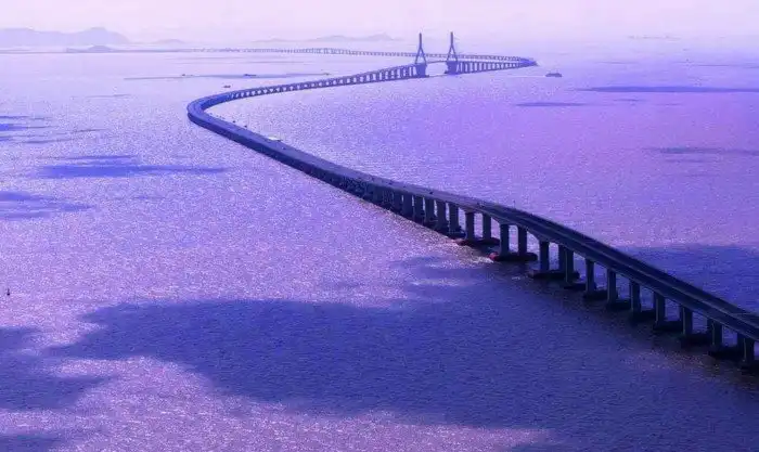 Самый длинный мост в мире, протянутый между Шанхаем и Нанкином с длиной 164,8 км. Пролегает над оврагами, реками и озерами. Около 9 км виадука проложено над водой! Открытие моста состоялось в 2011 году. По разным оценкам, китайцы потратили на него от 8,5 до 10 млрд. долларов.