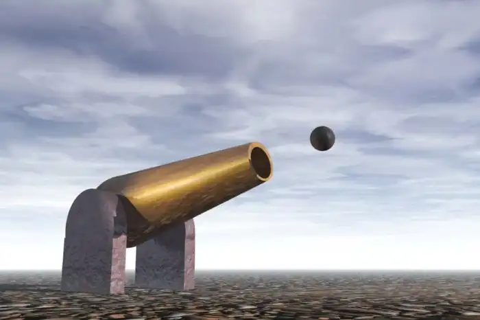 Мы сообщили ядру энергию. Ядро летит и в процессе полета теряет энергию. На ядро действуют, соответственно, сила трения о воздух и гравитация Земли. В итоге, ядро падает на поверхность Земли.