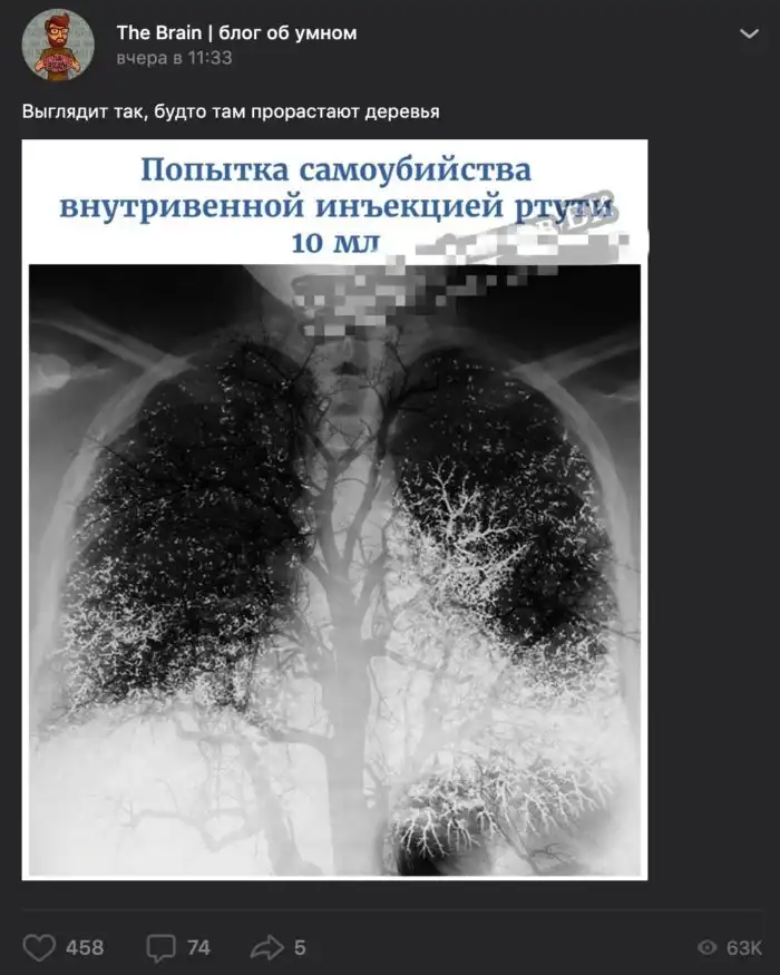 И там правда дерево, прилепленное фотошопом. Хотя снимок реален и пациентку спасли