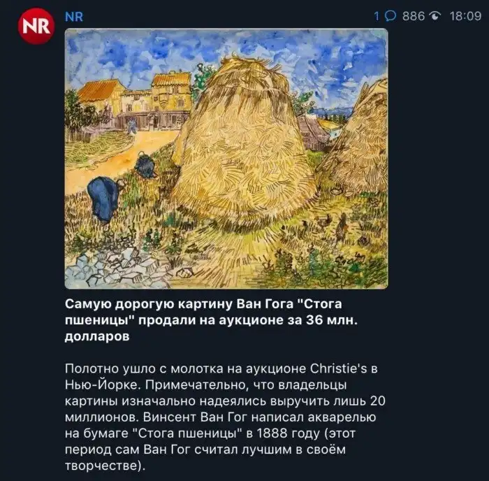 Картина «Портрет доктора Гаше» еще в 1990-м году был продана за 82,5 млн долларов