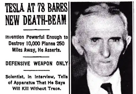 Впервые он упомянул о своем страшном изобретении в свой 78 день рождения в интервью для The New York Times. По его словам "луч смерти" был мощным настолько, чтобы разом уничтожить 10 тысяч самолетов на расстоянии 400 км или же испарить миллион военных.