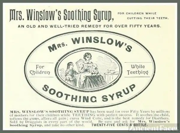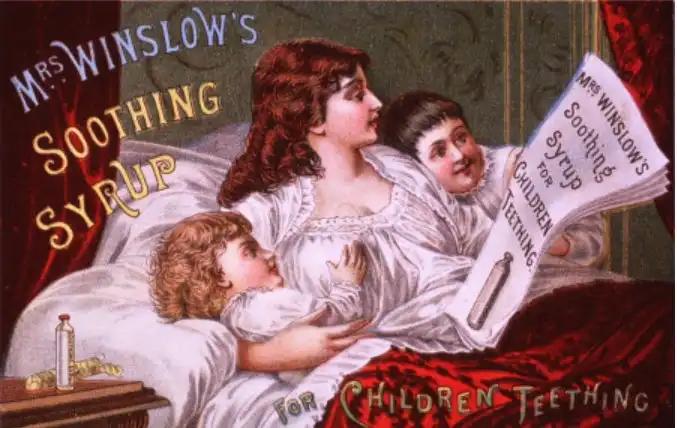 В рекламных объявлениях, печатаемых в поваренных книгах, женских журналах, газетах, календарях и каталогах почтовых товаров сообщалось, что чудесное средство миссис Уинслоу не только значительно облегчит боли при прорезывании зубов и коликах, отрегулирует работу кишечника, но и поможет беспокойным младенцам уснуть крепким здоровым сном.