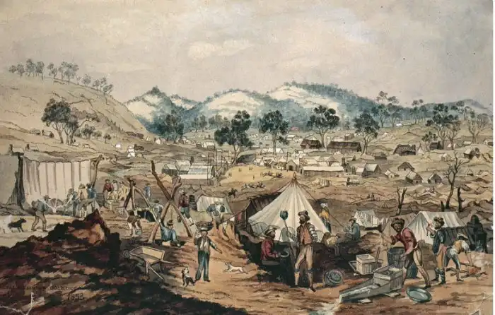Золотая лихорадка в Австралии, 1852 год, Литография Джорджа Френча Ангаса, 1852 г.