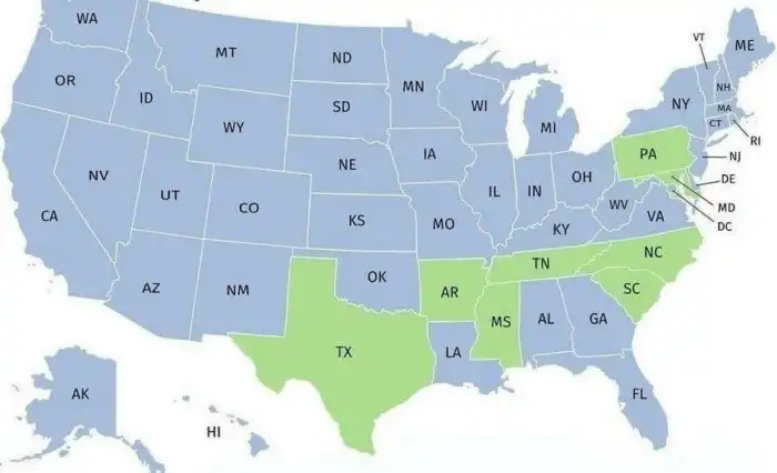 5. Зеленым цветом окрашены американские штаты, в которых атеистам запрещено занимать государственные должности