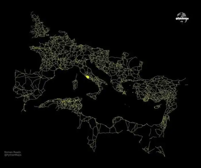 10. Все дороги ведут в Рим. Визуализация знаменитых дорог, построенных Римской империей