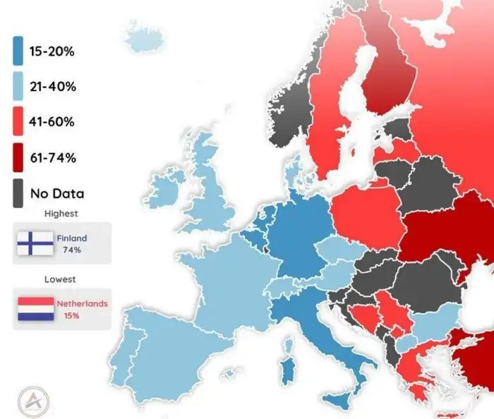 Самый высокий показатель у Финляндии, самый низкий у Нидерландов.