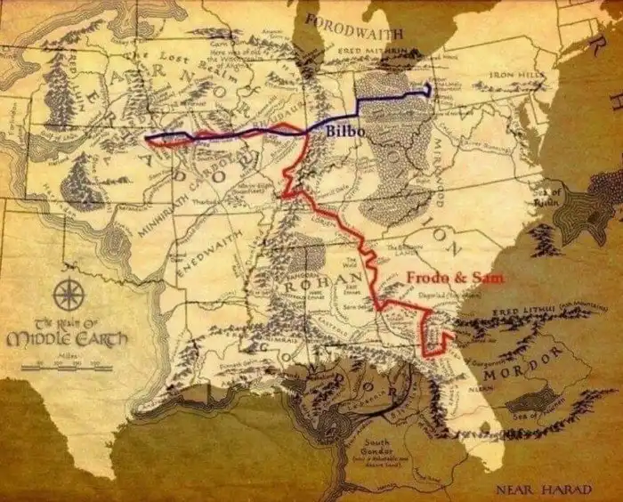 29. Карта путешествия Фродо и Сэма (а также Бильбо) по Средиземью