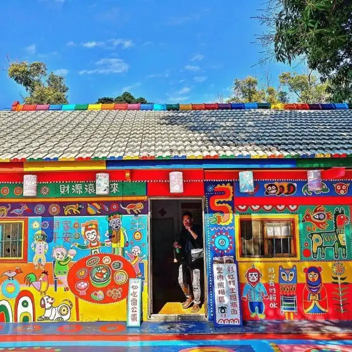 Небольшую тайваньскую деревню в 2007 году обрекли на снос. Все жители разъехались, а 84-летний дедушка Хуан Юн-Фу остался. Он прожил в деревне почти 40 лет и не хотел уходить. От одиночества он стал рисовать на домах. Китайский дедушка так разошёлся, что скоро покрыл своими яркими картинками все стены, крыши и даже дорожки. Рисунки спасли деревню от сноса, власти признали "радужную деревню" арт-объектом, который быстро стал популярным и в допандемийные времена привлекал не менее миллиона туристов в год.