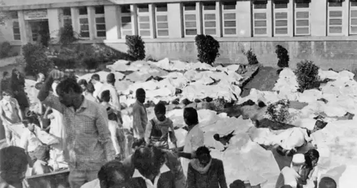 За полтора часа в воздух попало свыше тонны ядовитого вещества, но масштабы трагедии стали ясны только к утру, когда полиции Бхопала пришлось собирать по улице тела.