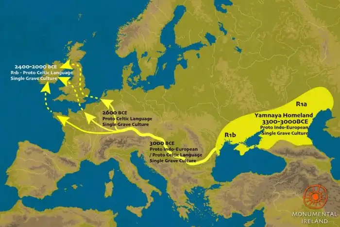 Действительно, гаплогруппа R1b, которая встречается в Ирландии, Шотландии, Франции, Испании, имеет свои истоки в Причерноморской степи. Миграция оттуда произошла примерно 2400 лет до н. э.