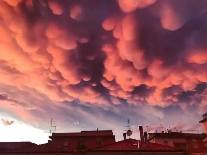 Эти облака известны как мамматусы или "вымяобразные". Они образованы холодным воздухом, который создает карманы, противоположные облакам, поднимающимся через теплый воздух. Из-за своего несколько пугающего вида, их считают предвестниками бури или урагана. Эти облачные скопления длятся в среднем от 15 минут до нескольких часов.