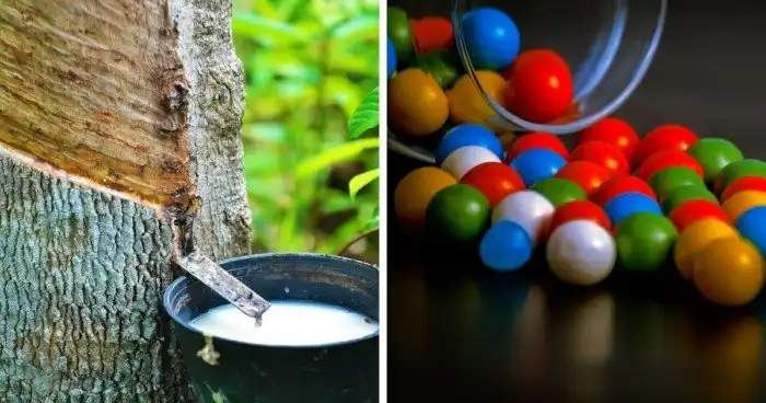 Для придания свежести своему дыханию люди жевали смолу хвойных деревьев, пчелиный воск, ароматные растения. Массовую популярность жвачка приобрела только в 1888 году. Сегодня жевательная резинка состоит из натурального латекса, добываемого из дерева под названием саподилла. Внешне он выглядит как молоко и имеет слегка горьковатый привкус.Латексную основу также добывают из смолы джелутонга, гуттаперчевого дерева.