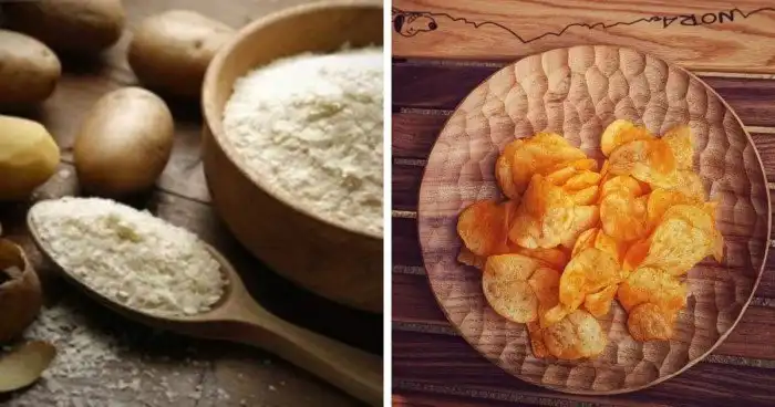Картофельные чипсы — популярная закуска во многих странах мира. Чтобы добиться их правильной формы, производители прибегают к ряду хитростей. Например, для изготовления продукта используется не цельный картофель, а картофельный порошок. На его основе замешивается тесто, из которого вырезаются фигурки необходимого размера. Дальше они обжариваются в масле и посыпаются специями.