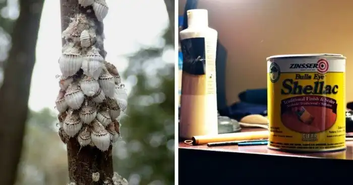 Шеллак — природная смола, добываемая из слюны лаковых червецов. Насекомых выращивают в промышленных масштабах, чтобы изготавливать лаки, грунтовки, другие строительные материалы.