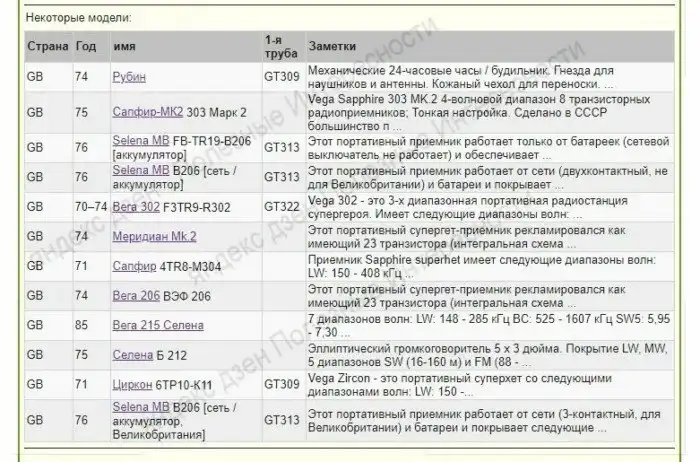 Вот расшифровки одной из страничек каталога радиомузея, извините за корявый электронный перевод:
