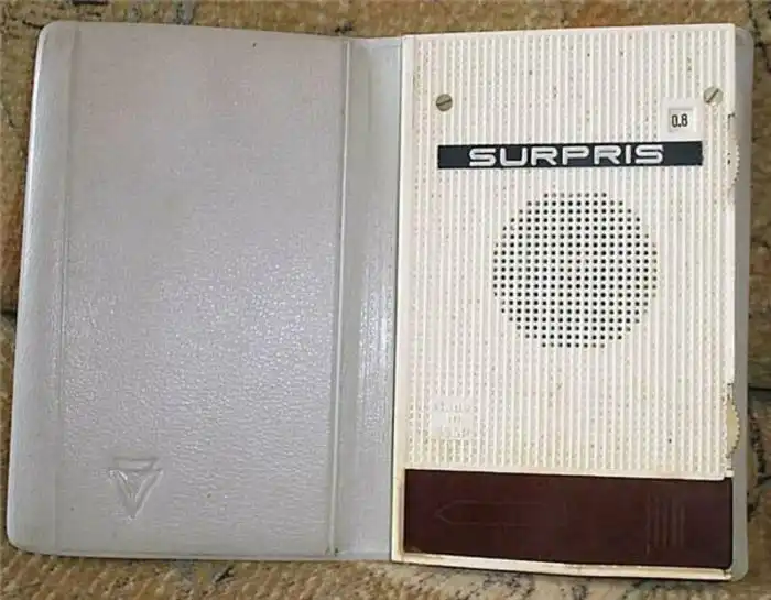 Оригинальный приемник-блокнот SURPRIS. Обратите внимание: даже листки блокнота на месте. Это наш радиоприемник Грозненского радиотехнического завода "Сюрприз", выпускавшийся с 1967года. Для этого приемника был специально разработан динамик толщиной всего 4мм. На момент выпуска приемник был самым тонким в мире.