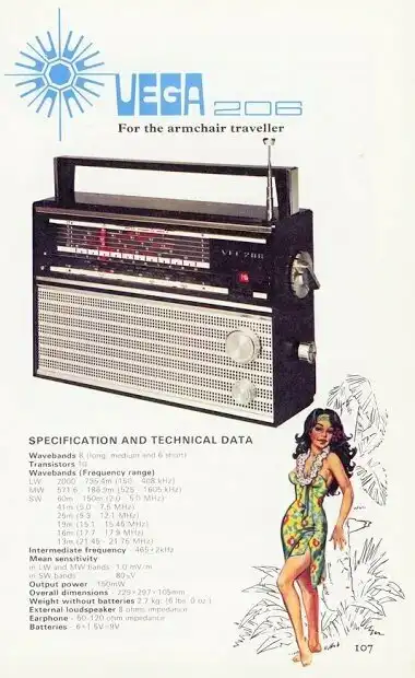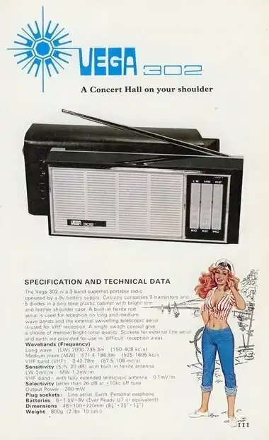 Компактные трехдиапазонные приемники ''Vega'', ''F3TR9'', ''Astrad'' это экспортные братья советского радиоприемника "Рига 302". Кроме стандартных ДВ и СВ диапазонов он принимал еще и УКВ диапазон. Отличное сочетание. Его выпускали в Риге с 1969 года .