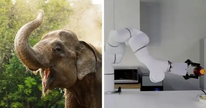 Роботизированная рука не была бы столь функциональной, если бы не слоны. Именно устройство хобота животного легло в основу изобретения. Роботизированная рука может захватывать предметы разных диаметров и поднимать грузы большого веса.