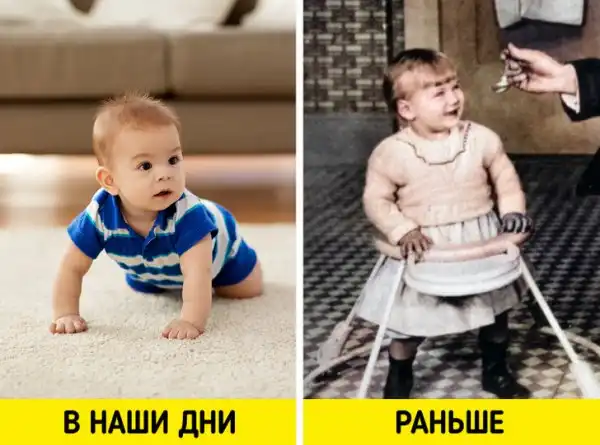 В прошлом детство не считалось важным периодом в жизни человека, дети были вынуждены как можно скорее становиться взрослыми. Родители не одобряли желание младенцев ползать, потому что, во-первых, малыши, передвигающиеся на четвереньках, напоминали животных, а во-вторых, пачкали одежду.