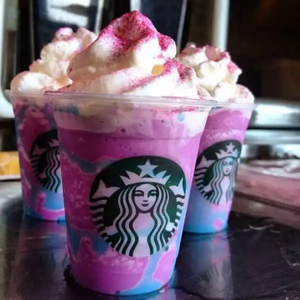 По волшебному яркий напиток со съедобными блёстками подавали в сети кофеен Starbucks. Однако многим он пришёлся не по вкусу. Посетители признались, что их оттолкнул кислотный цвет напитка и обилие украшений.