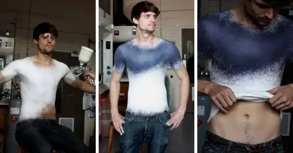 Испанский модельер Манель Торрес и профессор Пол Лакхем создали первую в мире жидкую ткань, которую можно распылять из баллончика прямо на тело человека. Жидкость твердеет и застывает за доли секунды. В результате человек получает абсолютно новую вещь, которая идеально сидит по его фигуре. На создание одной футболки уходит не более 15 минут. Надоевшие наряды не нужно выбрасывать. Их можно с легкостью утилизировать, опустив в специальный раствор.