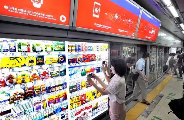 В Южной Корее запустили тестирование первых виртуальных магазинов. Что это такое? Компания Homeplus установила специальные экраны с изображением товаров в натуральную величину и их описанием. Под каждой позицией указан штрихкод. Чтобы приобрести желаемый продукт, покупателю достаточно отсканировать штрихкод через специальное приложение и оформить заказ. Планируется, что в ближайшее время такие витрины-экраны появятся и в других городах.