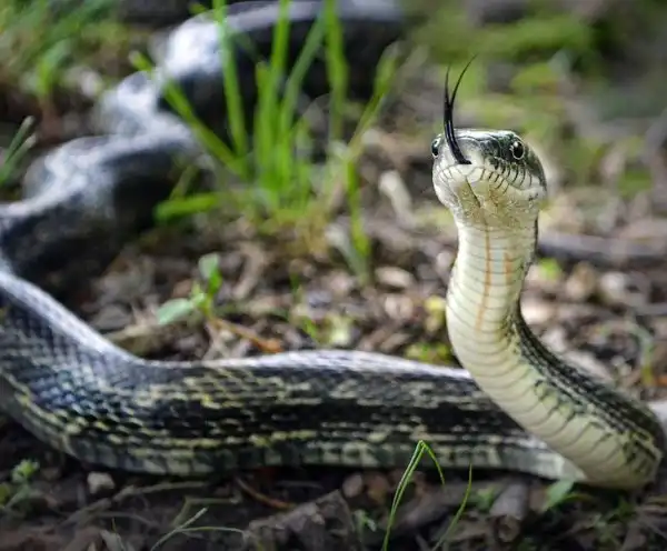 Высовывая язык, змея вовсе не пытается кого-то напугать: так она «нюхает» воздух. У этих рептилий плохо развиты зрение и слух, что они успешно компенсируют превосходным обонянием. С помощью языка змея улавливает мельчайшие частицы влаги, присутствующие в воздухе. Потом она помещает кончики языка в специальные отверстия, расположенные внутри неба. Так рецепторы информируют мозг о том, что поблизости может находиться подходящий для змеи обед, например мышь.