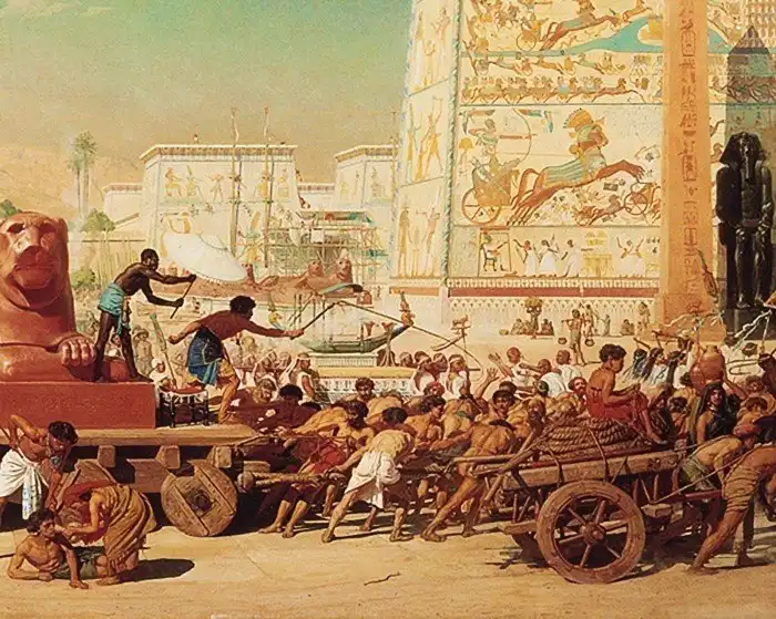 Фараоны начали проводить политику сдерживания рождаемости еврейского народа и наложили на него тяжелое налоговое и трудовое бремя.