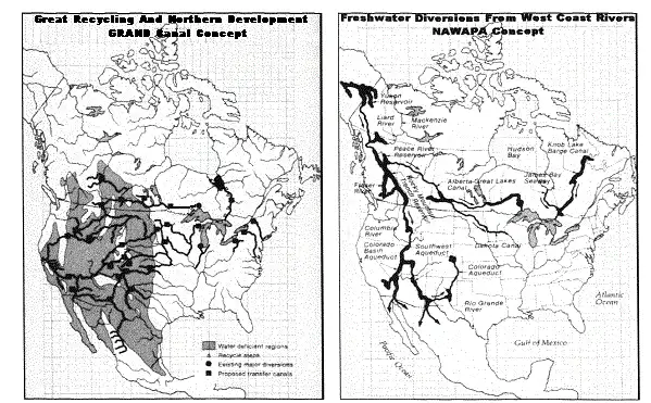 В США существовало несколько проектов по переброске вод с севера континента в засушливые центральные и южные земли, но NAWAPA считался самым перспективным и проработанным.