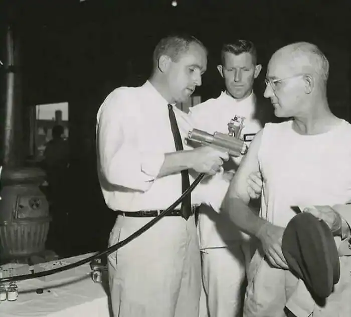 29. Безыгольный инъектор — устройство для введения вакцины без иглы, вакцина проникала через кожу пациента за счет сильного давления. Главное было не дергаться, иначе кожу могло разорвать
