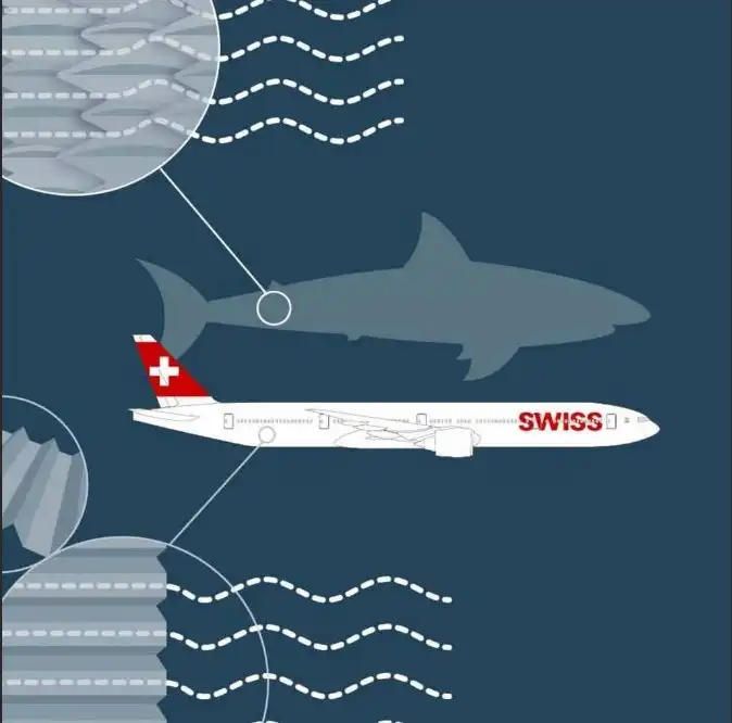 Одним из способов уменьшения расхода топлива считается улучшение обтекаемости самолетов. В поисках дальнейшего совершенствования этой характеристики конструкторы обратились к акулам, которые славятся изяществом своих силуэтов. Кожа этих хищников покрыта огромным количеством крошечных чешуек, накладывающихся друг на друга. А у видов, приспособленных к стремительному плаванию (акулы-молоты, мако, галапагосские акулы), чешуйки прорезаны ещё и бороздками, которые проходят вдоль всего туловища от носа до хвоста. Эти каналы заметно снижают сопротивление воды.